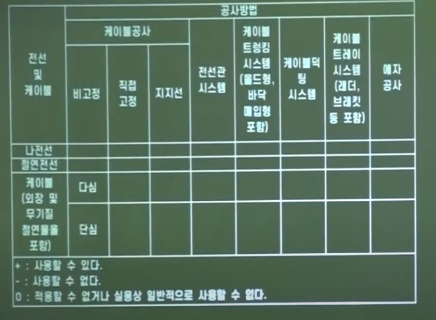 10.저압 옥내 사용하는 전선 또는 케이블의 종류에 따른 배선설비의 설치방법(버스바트렁킹 시스템 및